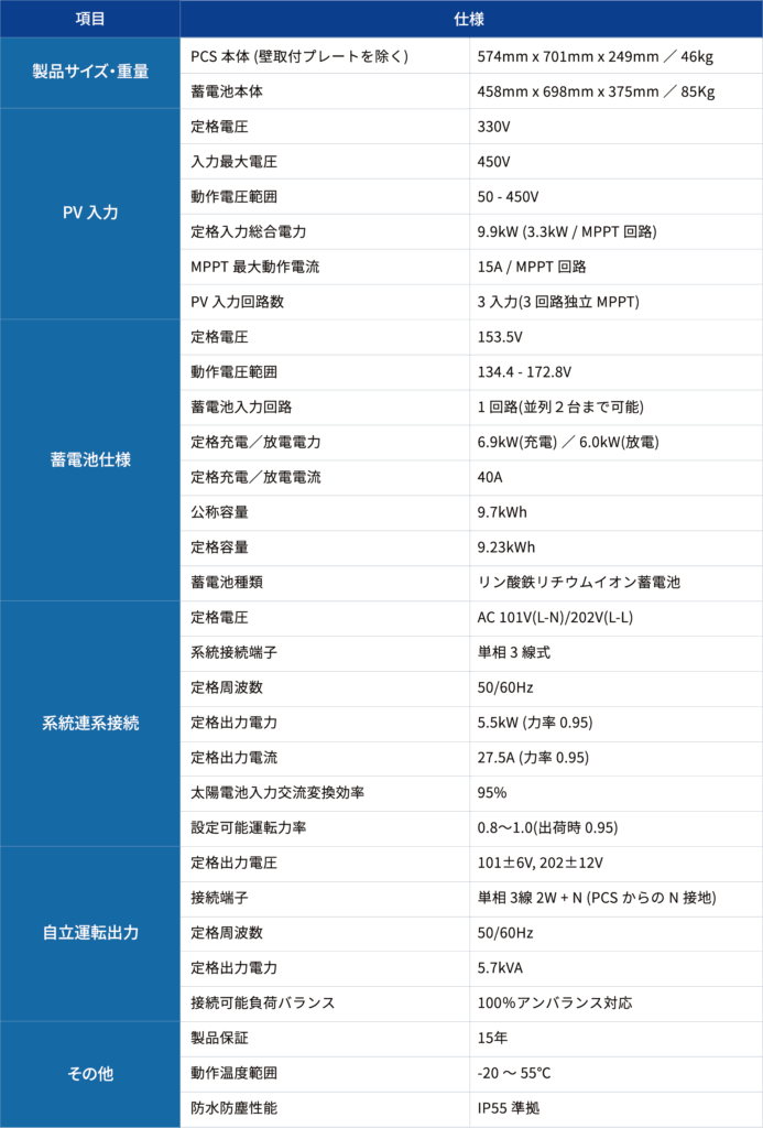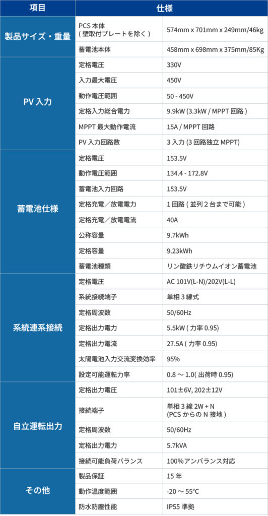 住宅用蓄電池搭載型ハイブリッドパワコン(日本製)